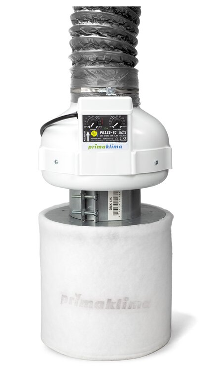 Hochwertige Anschlussmanschette für eine feste Verbindung von Ventilator und Filter, mit Ösen zum Aufhängen