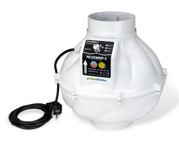 Durch ein neuartiges System sind diese Lüfter 2,5 Mal leiser als andere Lüfter mit vergleichbarem Motor. Das Innere des Whisperblowers ist so konzipiert, dass die Luftzirkulation bis zu 40% erhöht wird und er außerdem bis zu 20% mehr Druck stand hält. Prima Klima verwendet EBM-Papst Motoren und die Außenhülle ist aus qualitativ hochwertigem UL94 Nylon. Die zu erwartende Lebensdauer des Whisperblowers liegt bei bis zu 80.000 Stunden.