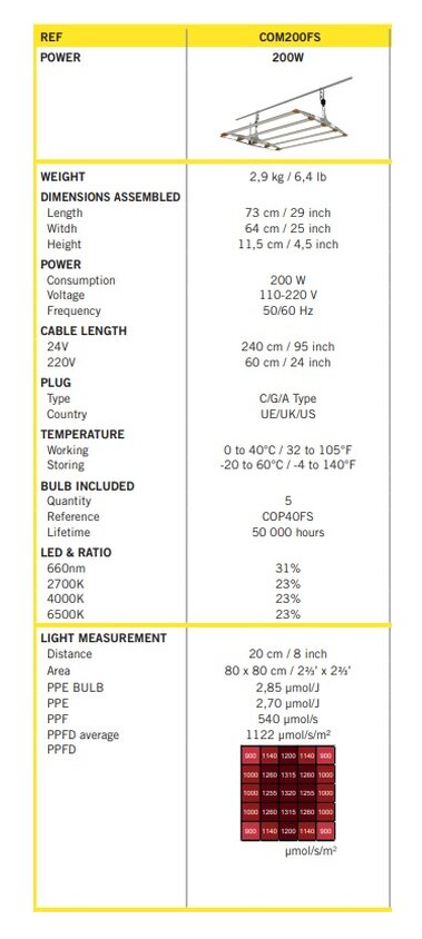 COM200FS : PPE = 2.7μmol/s/w (PPE-Leuchtmittel = 2.85μmol/s/w)